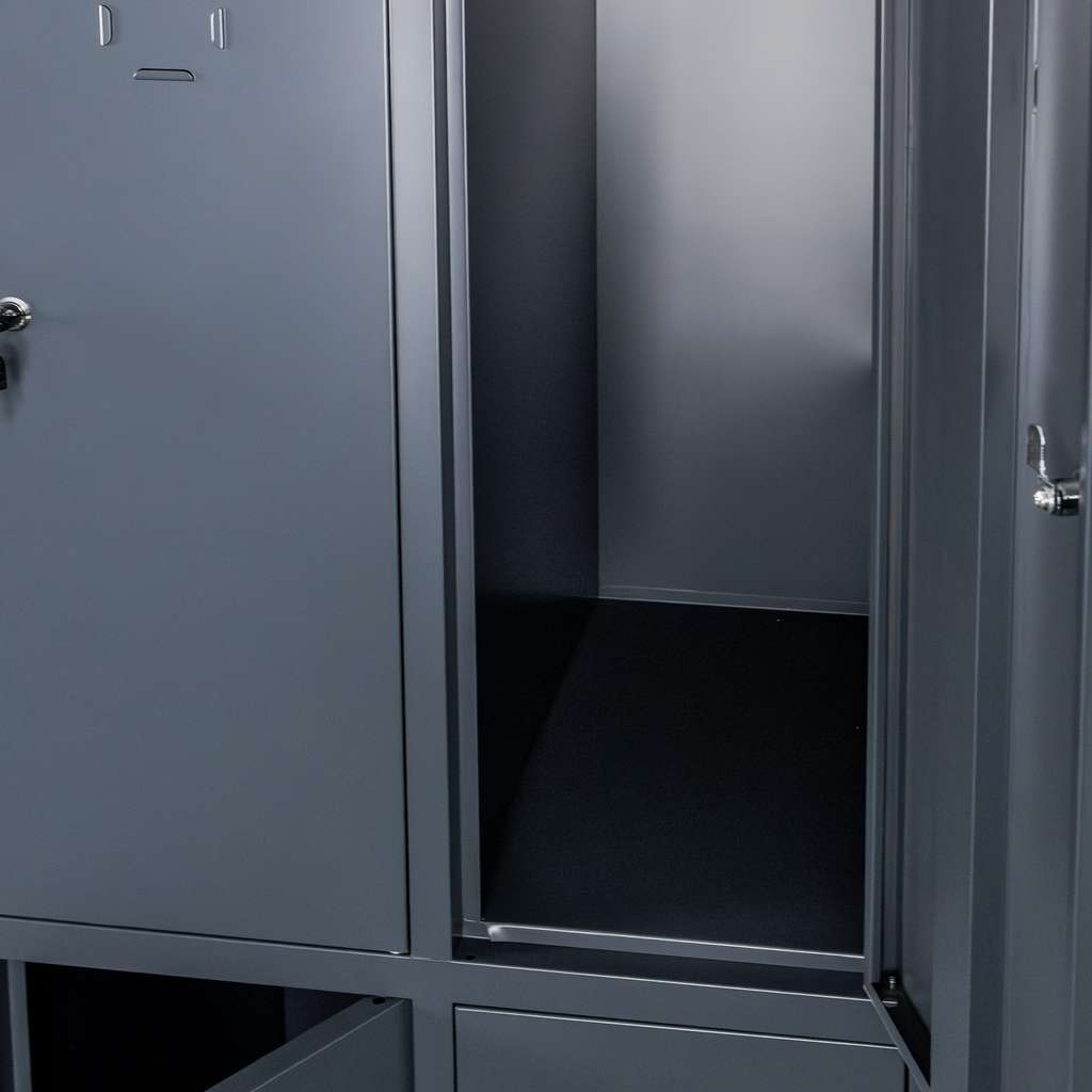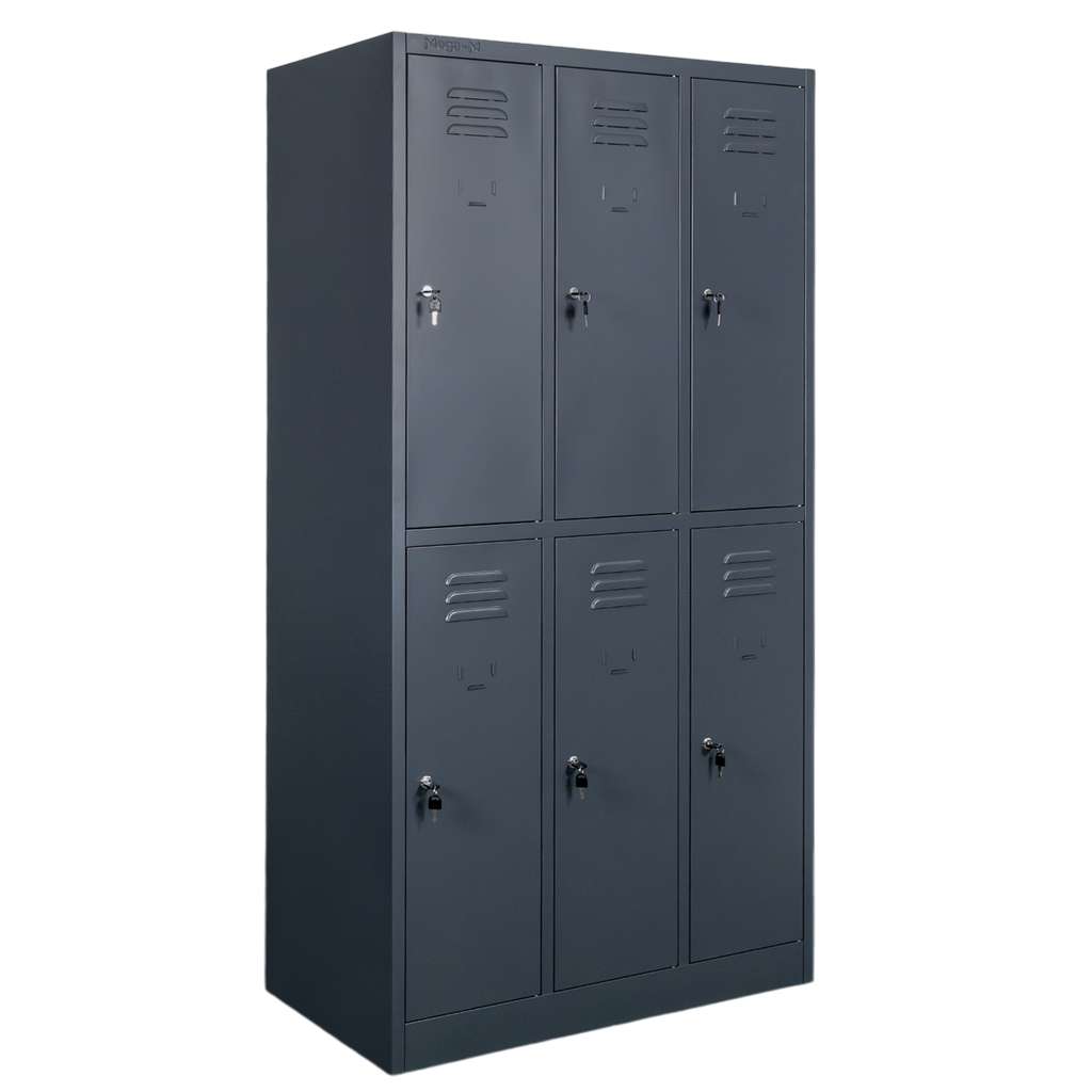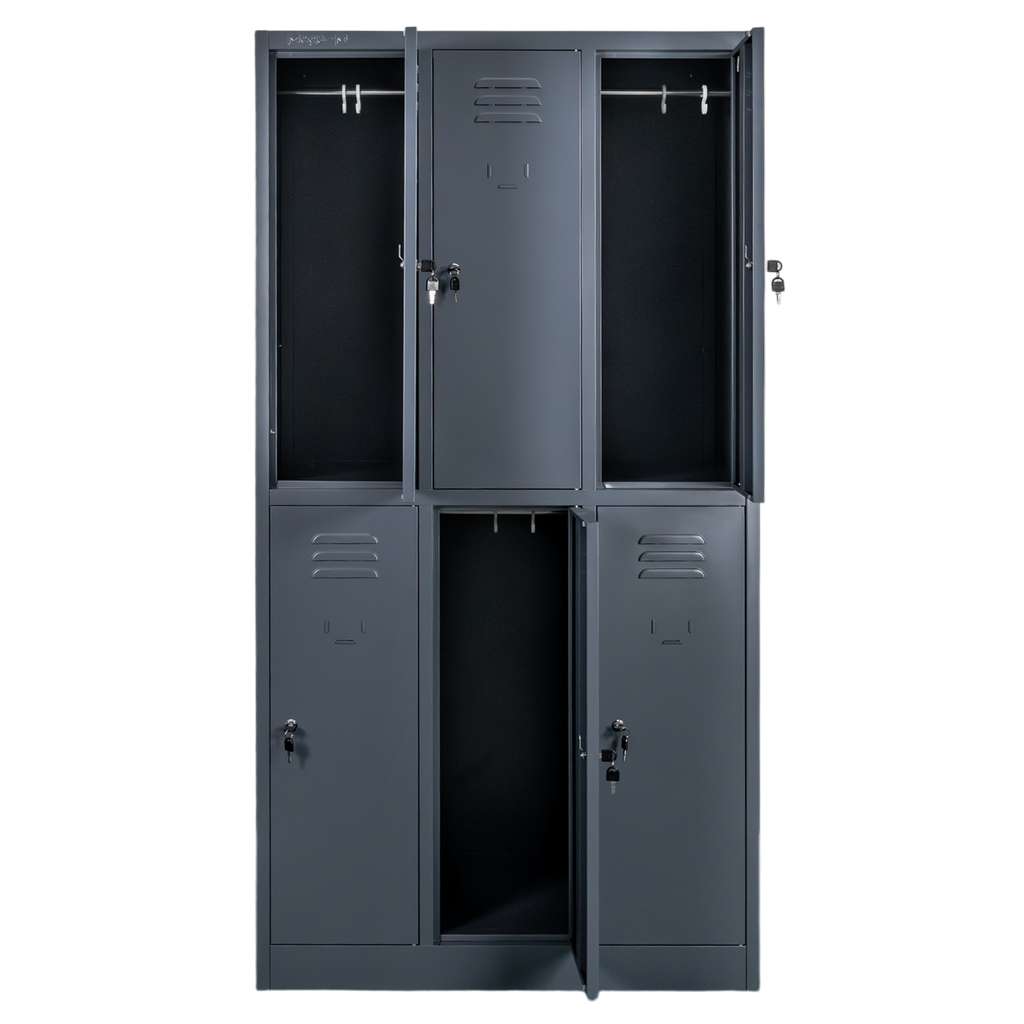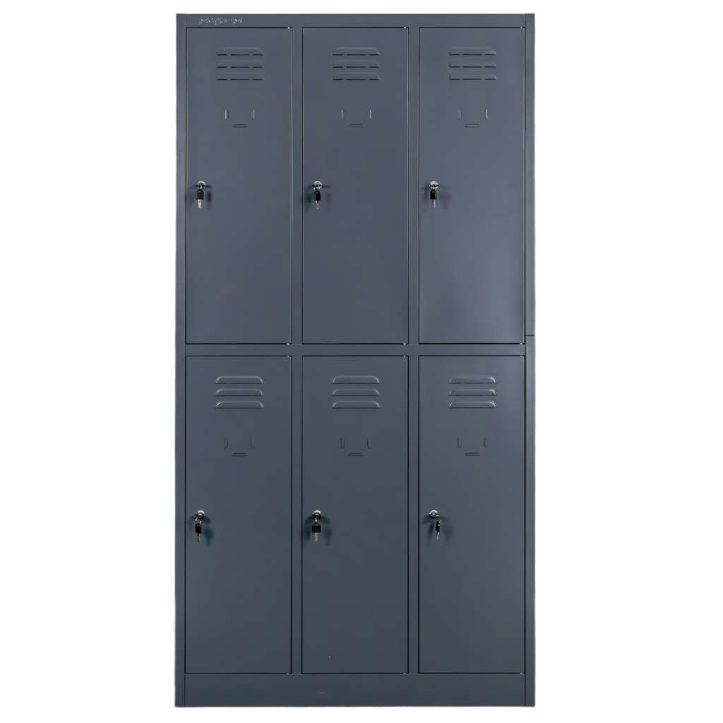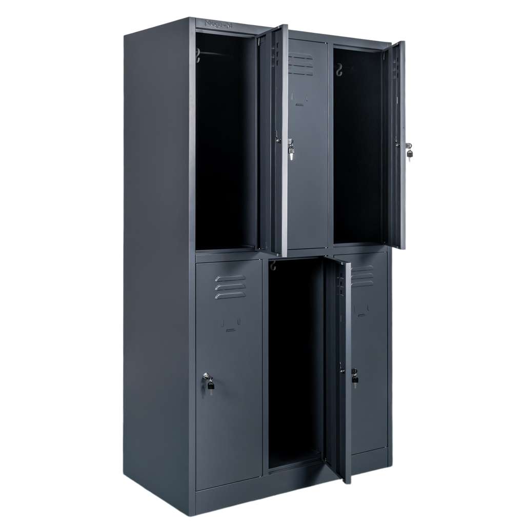 Szafka ubraniowa skrytkowa BHP Mega-M J-90/6 6 drzwiowa grafitowa S-90 cm G-50 cm H-180 cm skręcana N