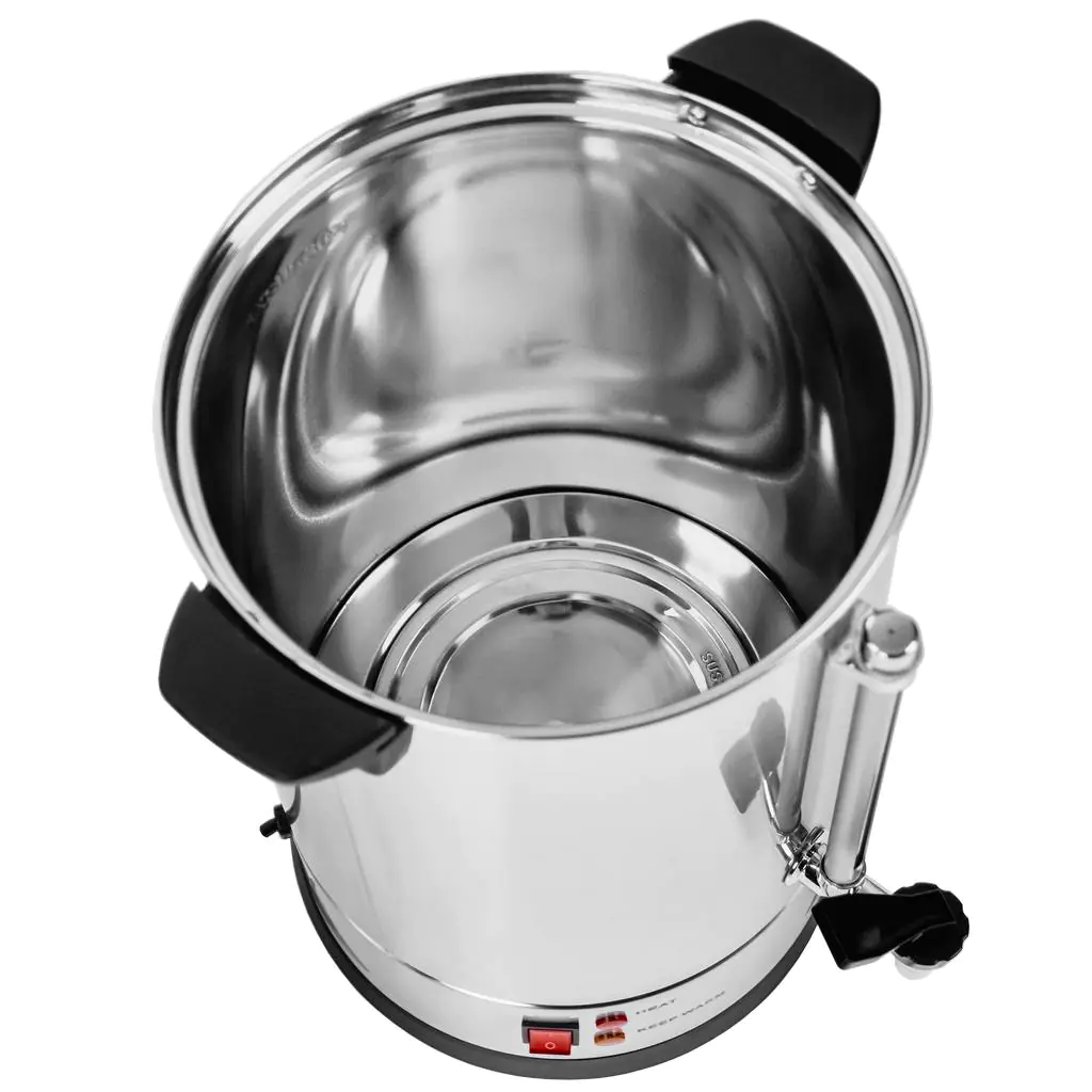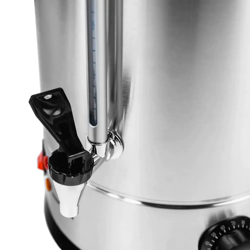 Warnik do wody Mega-M służy do podgrzewania oraz utrzymania temperatury wody przeznaczonej do przygotowania napojów. Umożliwia serwowanie i wydawanie kawy, herbaty na wszelkiego rodzaju bufetach, szkoleniach czy konferencjach. Podgrzewacz na wodę posiada kranik spustowy, który ułatwia nalewanie. Wykonany jest ze stali nierdzewnej, dzięki czemu jest łatwy do utrzymania w czystości. Warnik wyposażony jest w regulację temperatury oraz wskaźnik poziomu wody, który informuje o potrzebie uzupełnienia podgrzewacza.