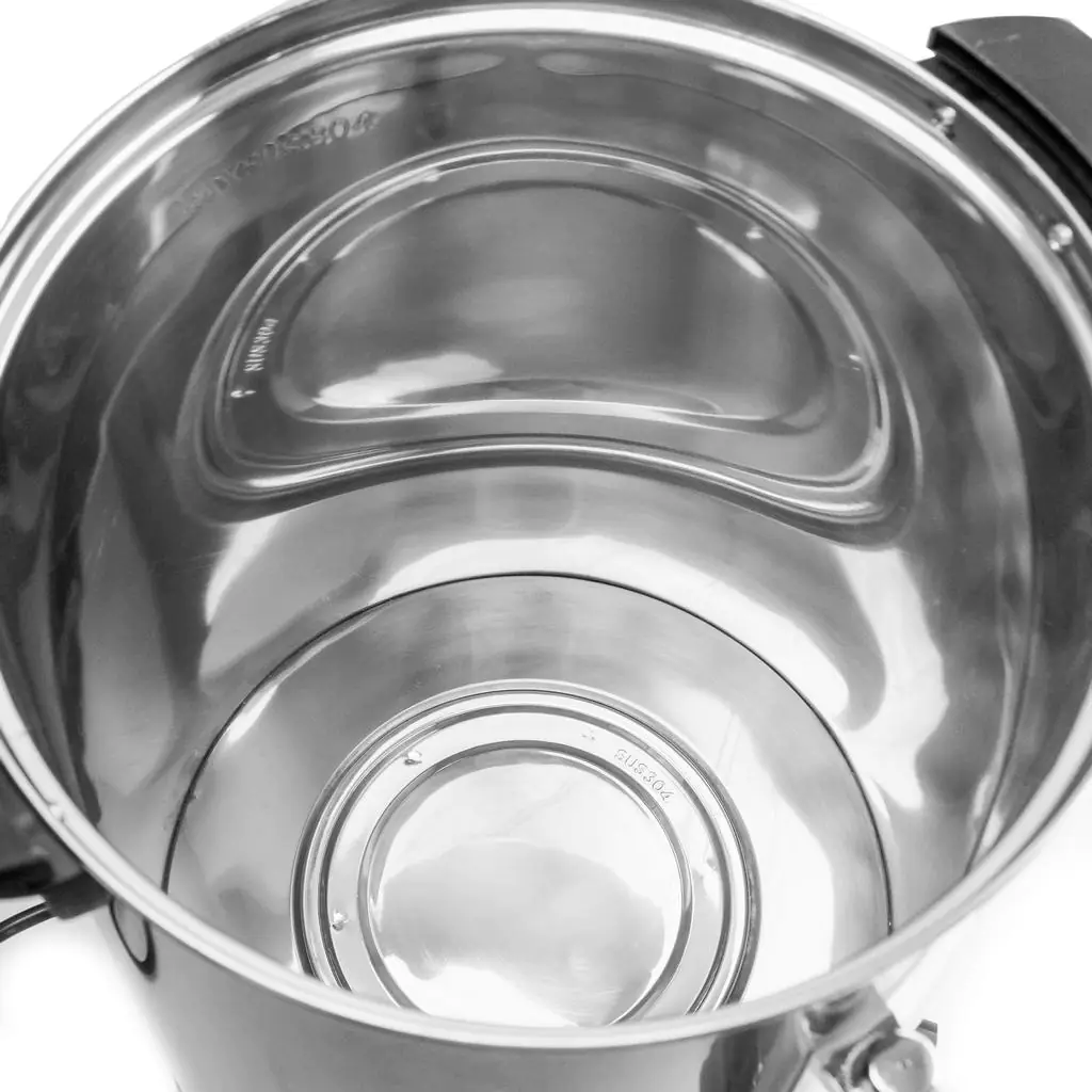 Warnik do wody Mega-M służy do podgrzewania i utrzymania temperatury wody przeznaczonej do przygotowania napojów. Umożliwia serwowanie i wydawanie kawy, herbaty na wszelkiego rodzaju bufetach, szkoleniach czy konferencjach. Podgrzewacz na wodę posiada kranik spustowy, który ułatwia nalewanie. Wykonany jest ze stali nierdzewnej, dzięki czemu jest łatwy do utrzymania w czystości. Warnik wyposażony jest w regulację temperatury oraz wskaźnik poziomu wody, który informuje o potrzebie uzupełnienia podgrzewacza.