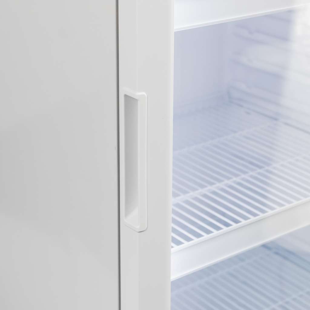 Witryna chłodnicza Mega-M DIEGO i59 to niezawodne urządzenie stworzone z myślą o sklepach, lokalach gastronomicznych oraz punktach usługowych. Witryna ekspozycyjna wyposażona jest w trwałą i odporną na codzienne użytkowanie obudowę ze stali lakierowanej proszkowo w kolorze białym. Urządzenie posiada samozamykające się przeszklone drzwi, które zapewniają bardzo dobrą widoczność produktu. Szafa chłodnicza posiada wzmocnione półki powlekane tworzywem sztucznym, który wysokość można dowolnie regulować pod produkty. Łatwe w obsłudze manualne sterowanie zapewnia optymalne warunki do przechowywania soków, napojów, alkoholu oraz produktów gotowych do sprzedaży.