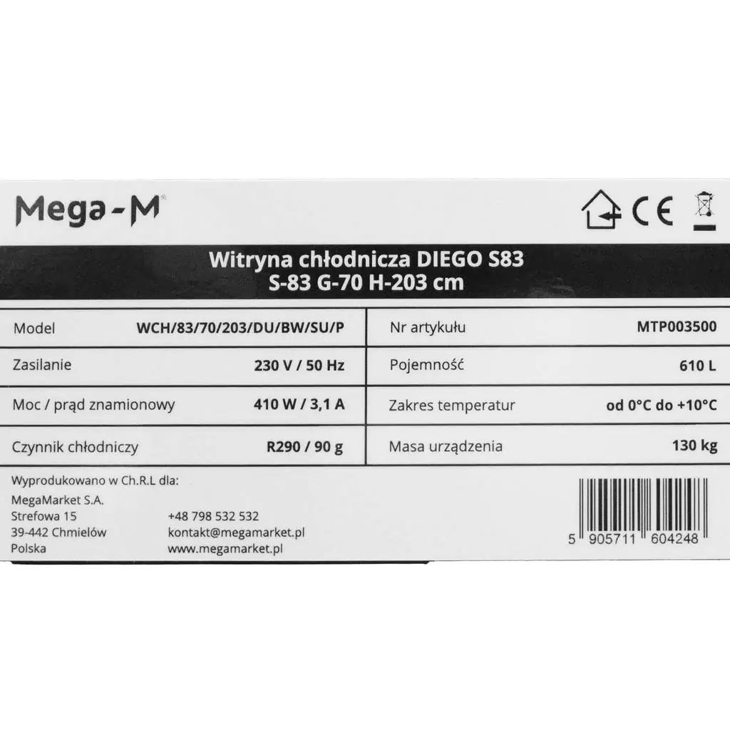 Witryna chłodnicza Mega-M DIEGO S83 S-83 cm G-70 cm H-203 cm N