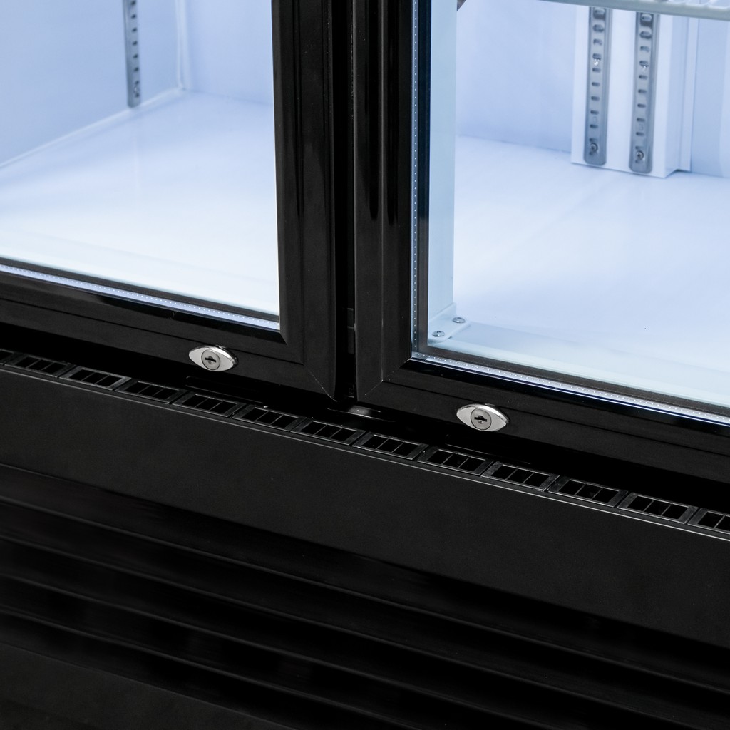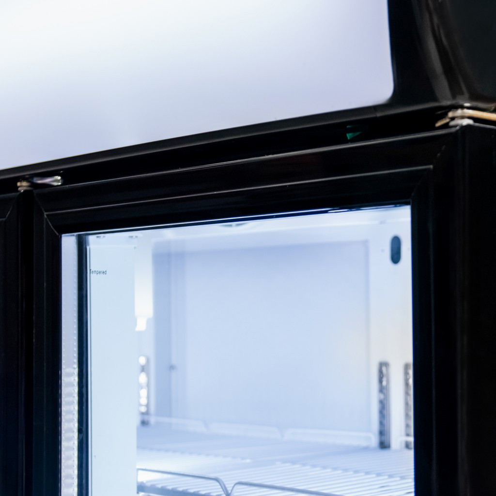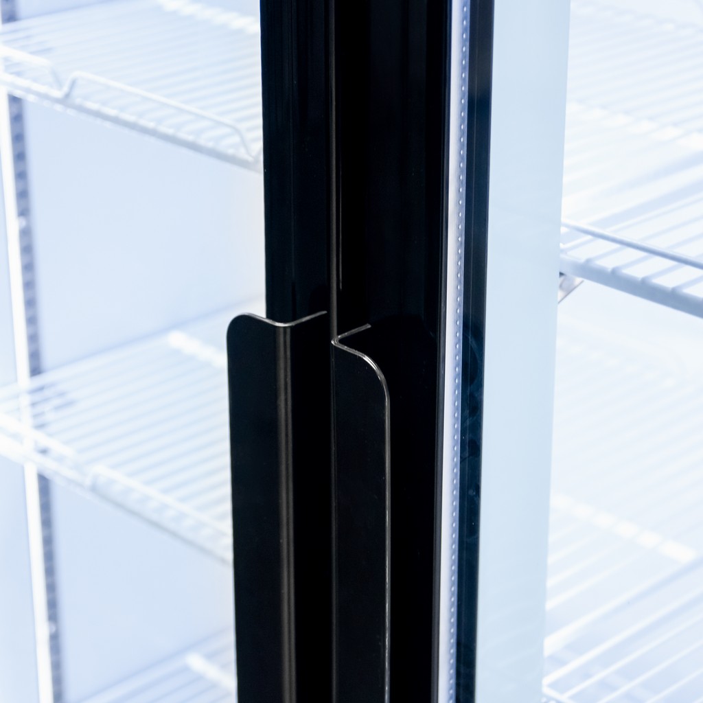 - Drzwi otwierane z podwójną warstwą hartowanego szkła i funkcją samoczynnego zamykania się.