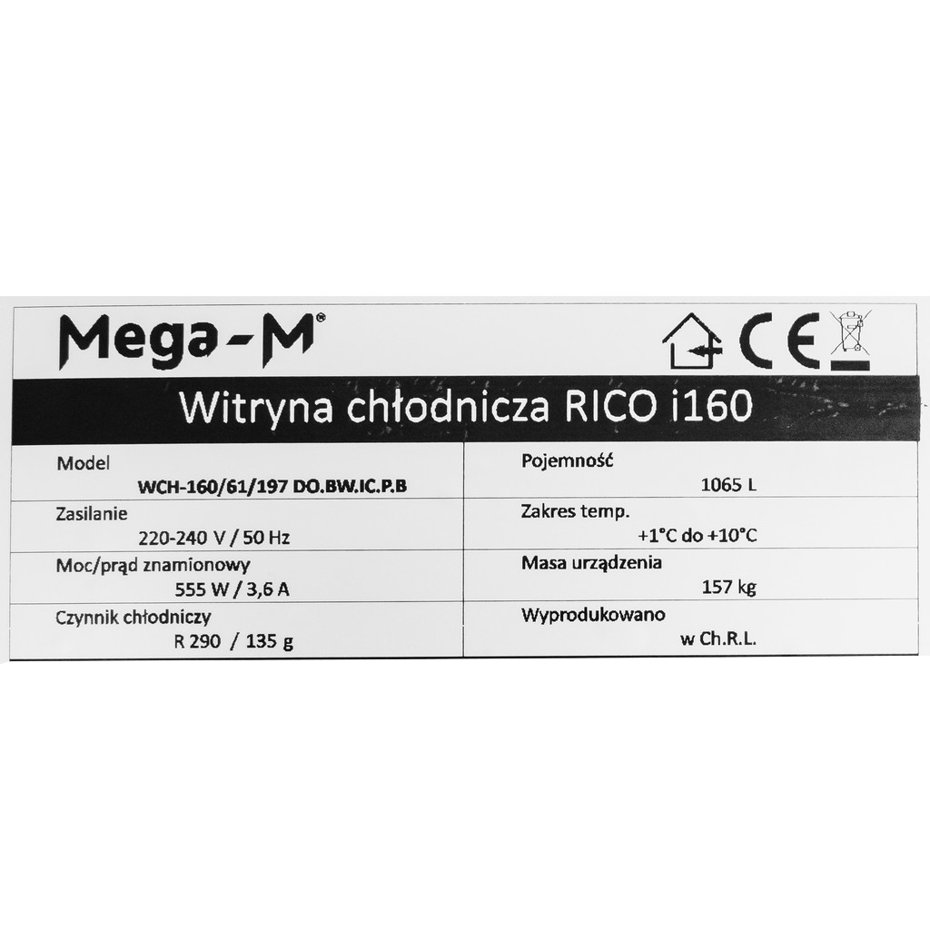 Witryna chłodnicza Mega-M RICO i160 S-160 cm G-61 cm H-198 cm N