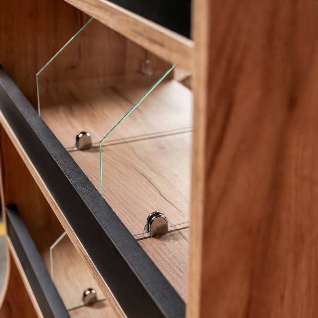 Witryna sklepowa Mega-M to solidny mebel pozwalający w wygodny i atrakcyjny sposób wyeksponować słodycze na wagę: ciastka, cukierki, czekoladki. Gablota sklepowa posiada 4 rzędy półek podzielonych przegrodami oraz pojemną szufladę. Dzięki temu można umieścić w niej duże ilości słodkości na raz. Witryna cukiernicza wykonana jest z płyty meblowej w kolorze dąb kraft. Front witryny na cukierki został wykonany z plexi.