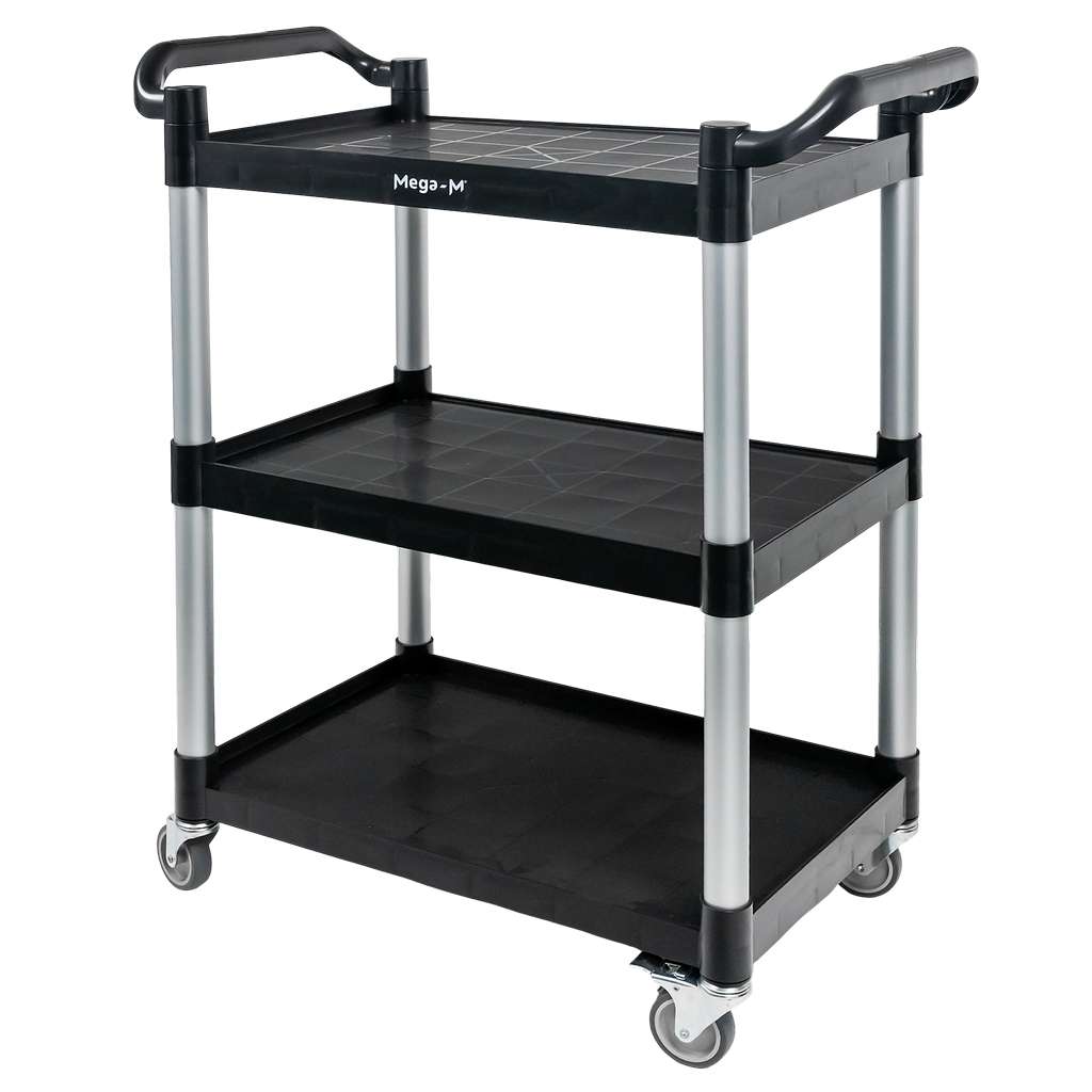 Wózek kelnerski z tworzywa 3-półkowy Mega-M S-80 cm G-40 cm H-95 cm czarny N