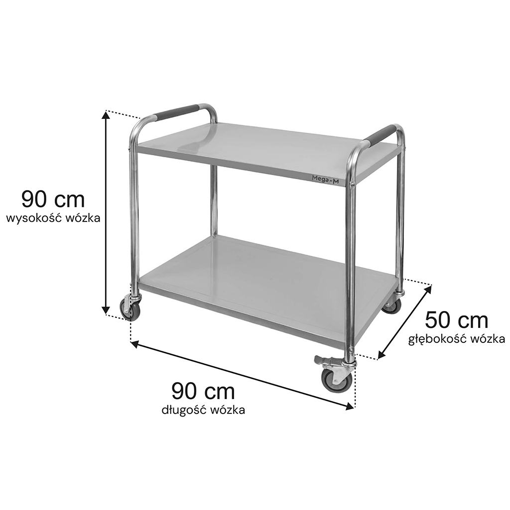 Wózek gastronomiczny kelnerski 90x50x90 cm Mega-M STANDARD 2 półki – najwyższa jakość wykonania