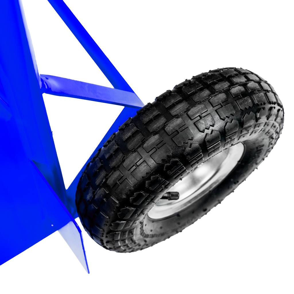 Pneumatyczne, pompowane koła o średnicy 26 cm osadzone są na łożyskach, dzięki czemu cała konstrukcja wózka ulega dodatkowemu wzmocnieniu.