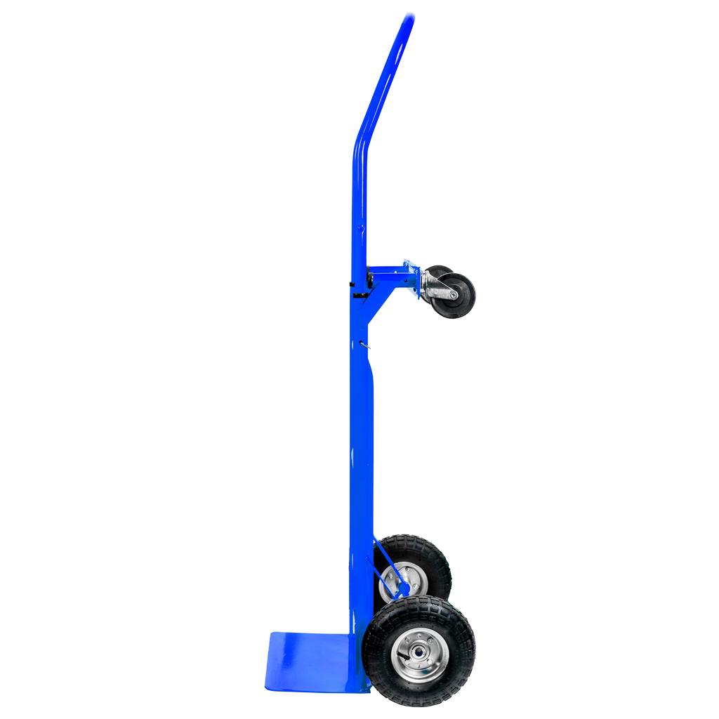 Wózek młynarka Mega-M 2w1 posiada wysuwany uchwyt umożliwiający szybką zmianę z pozycji pionowej do poziomej wózka. Wózek taczkowy jest idealny do przewożenia ciężkich paczek, kartonów, skrzynek z napojami, mebli, sprzętu AGD o masie do 250 kg. Wytrzymała wzmocniona konstrukcja zapewnia wygodę i bezpieczeństwo podczas przewożenia. Szeroka platforma, 2 pneumatyczne koła na łożyskach i 2 skrętne to jego dodatkowe atuty.