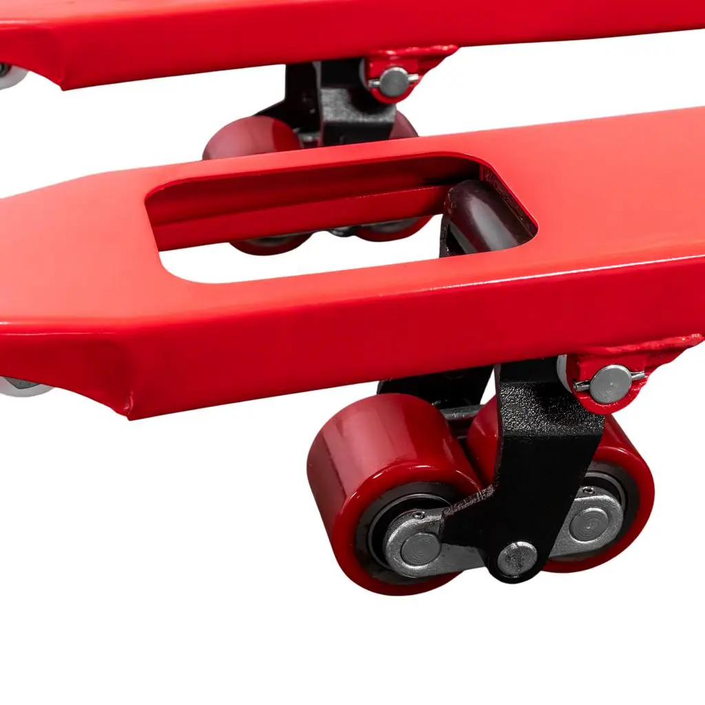 Wózek paletowy FORKBERG L-1150 to ręczny paleciak, który zapewnia efektywny transport ładunków o masie do 2500 kg. Dzięki długości wideł 1150 mm i rozstawowi 540 mm, doskonale sprawdza się w pracy z najpopularniejszymi europaletami. Precyzyjna konstrukcja, solidne wykonanie i ręczna pompa hydrauliczna gwarantują bezproblemowe działanie nawet przy intensywnym użytkowaniu w magazynach, hurtowniach, centrach logistycznych czy na halach produkcyjnych. Wyposażony w kółka i rolki z poliuretanu (PU) – sterujące o średnicy 20 cm oraz rolki 80×70 mm – zapewniają cichą, płynną jazdę i wysoką odporność na ścieranie. Minimalna wysokość wideł to 8 cm, maksymalna – 20 cm, co umożliwia łatwe podnoszenie i precyzyjne puszczanie towarów.