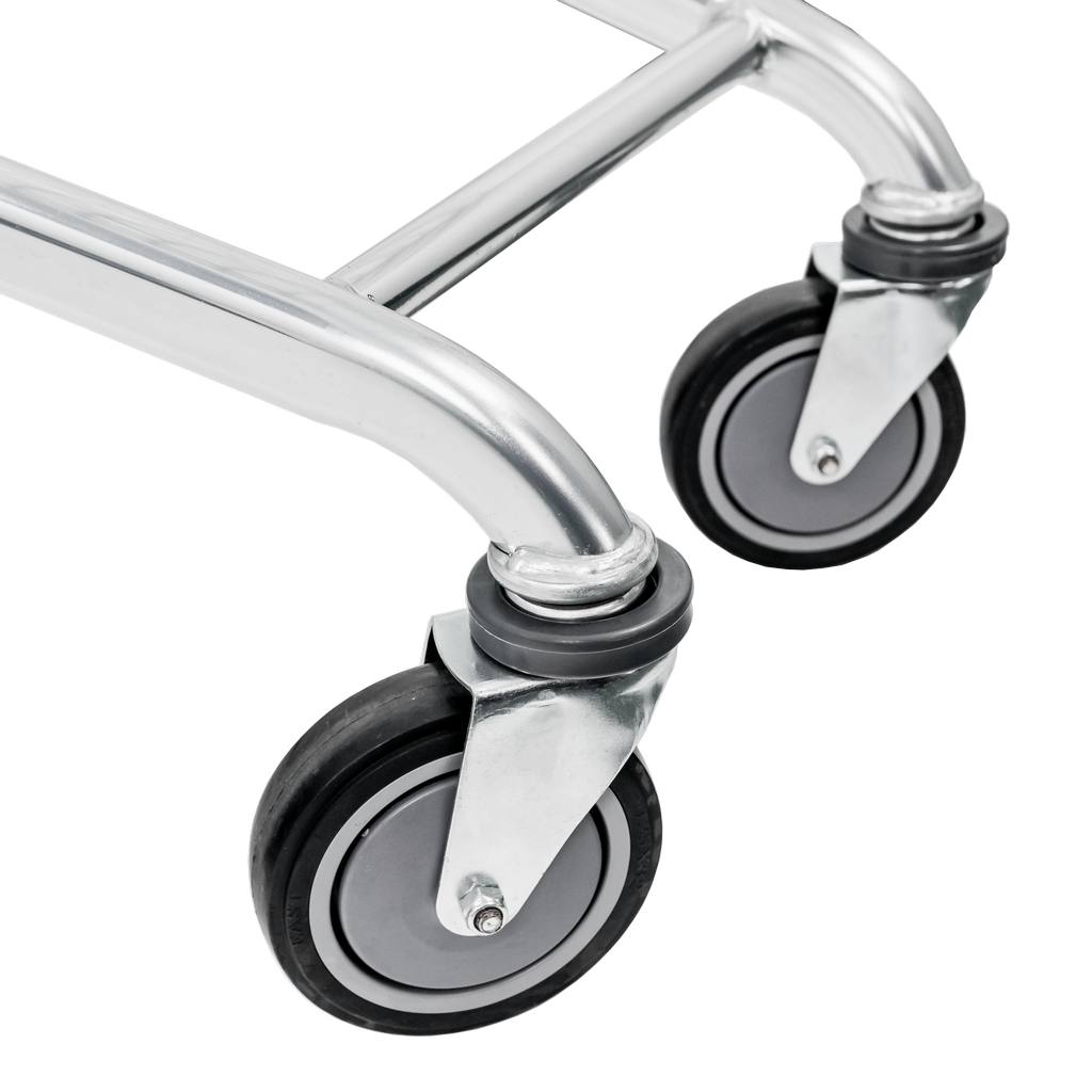 Wózek sklepowy Mega-M to niezbędny element wyposażenia każdego sklepu samoobsługowego. Zapewnia komfort i wygodę podczas zakupów. Wykonany jest z wysokiej jakości drutu stalowego ocynkowanego odpornego na korozję. Nowoczesny i funkcjonalny wózek sklepowy posiada wygodny uchwyt metalowy pokryty tworzywem sztucznym. Zastosowane skrętne kółka nie blokują się, a wózek z wypełnionym koszem łatwo się prowadzi.