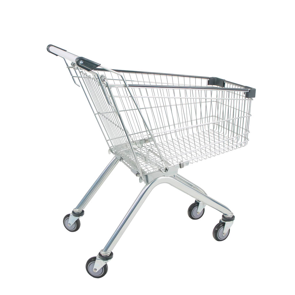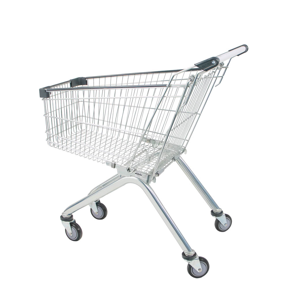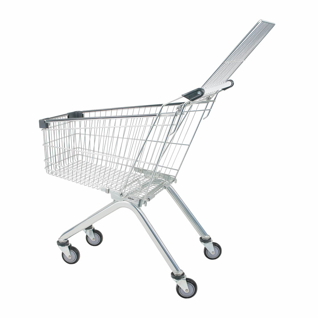 Wózek zakupowy Mega-M YR 95L kompaktowy i skrętny wózek o szerokości kosza 50 cm doskonale sprawdza się w sklepach z wąskimi alejkami, takich jak drogerie, sklepy spożywcze, monopolowe czy warzywniaki. Wykonany jest wysokiej z chromowanego, ocynkowanego drutu stalowego odpornego na korozję i łatwego do utrzymania w czystości. Wózek sklepowy posiada cztery skrętne koła, które zapewniają lekkie manewrowania nawet przy pełnym załadowaniu koszyka. Dodatkowym jego atutem jest możliwość personalizacji uchwytu – w rączce można umieścić nazwę sklepu, logo lub informację promocyjną, co pozwala na budowanie wizerunku marki wśród klientów.