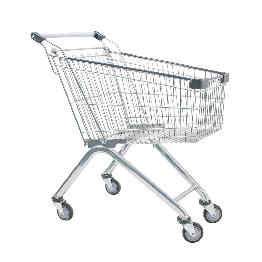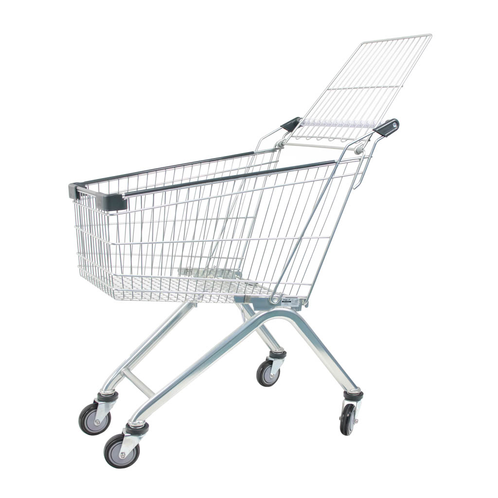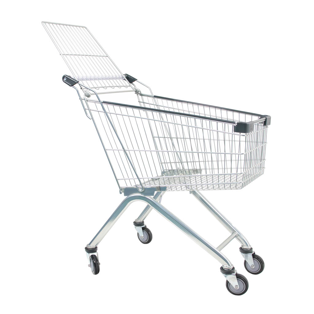 Wózek zakupowy Mega-M YR 95L kompaktowy i skrętny wózek o szerokości kosza 50 cm doskonale sprawdza się w sklepach z wąskimi alejkami, takich jak drogerie, sklepy spożywcze, monopolowe czy warzywniaki. Wykonany jest wysokiej z chromowanego, ocynkowanego drutu stalowego odpornego na korozję i łatwego do utrzymania w czystości. Wózek sklepowy posiada cztery skrętne koła, które zapewniają lekkie manewrowania nawet przy pełnym załadowaniu koszyka. Dodatkowym jego atutem jest możliwość personalizacji uchwytu – w rączce można umieścić nazwę sklepu, logo lub informację promocyjną, co pozwala na budowanie wizerunku marki wśród klientów.