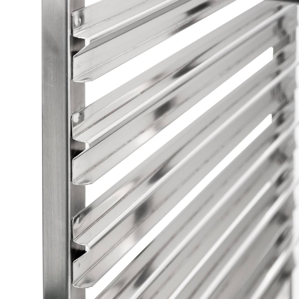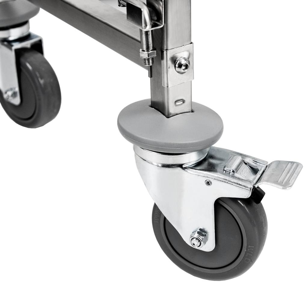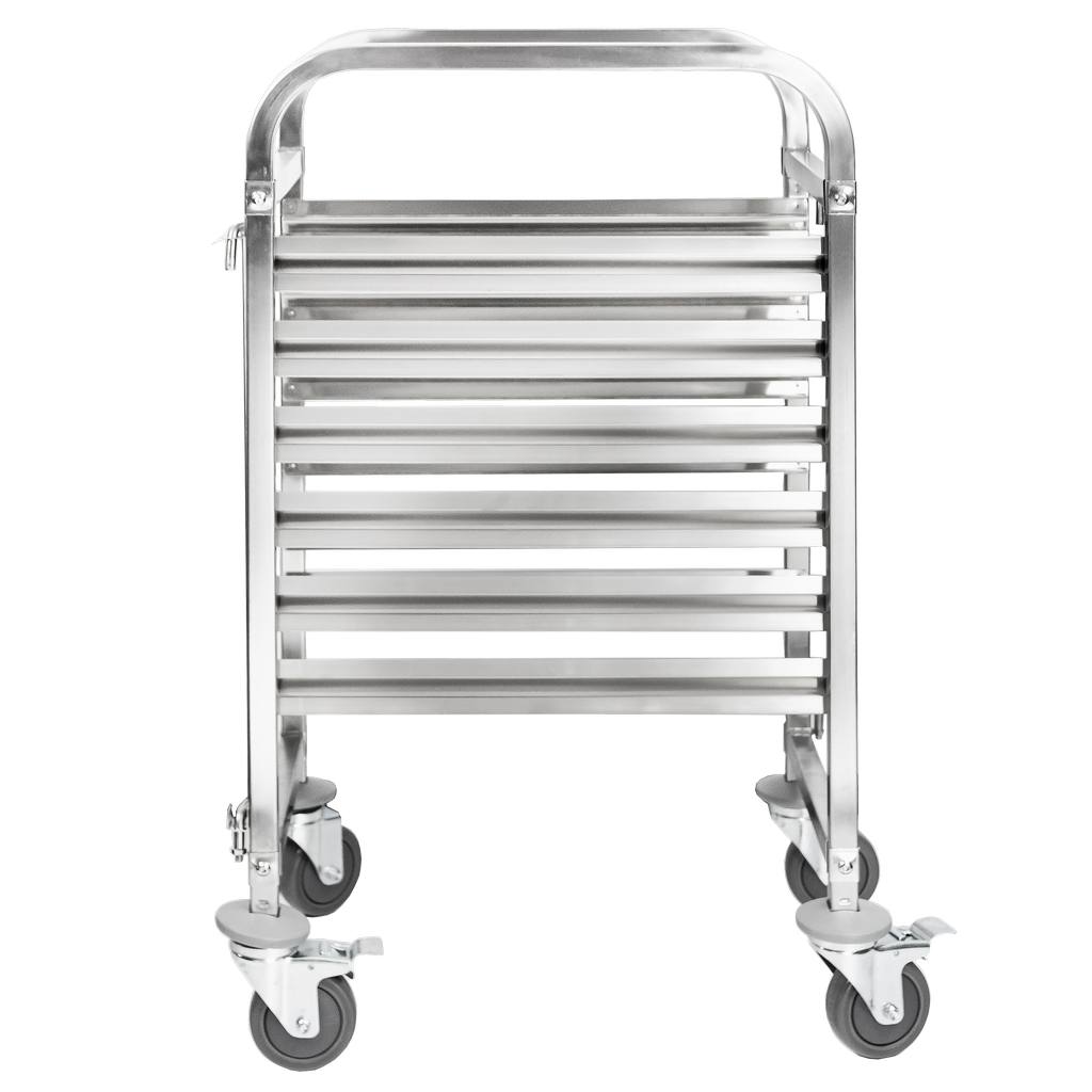 Uniwersalny wózek gastronomiczny do transportu pojemników typu GN został wyposażony w 6 półek. Wykonanie ze stali nierdzewnej gwarantuje długi okres użytkowania oraz odporność na uszkodzenia mechaniczne. Wózek transportowy został wyposażony w 4 kółka (2 z hamulcem oraz dwa bez). Dzięki temu przewożenie pojemników z żywnością będzie łatwe, a zarazem stabilne. Gładka powierzchnia wózka ułatwia jego czyszczenie i sprawia, że resztki jedzenia nie będą się na nim osadzać. Wózek pomieści jednorazowo 6 pojemników GN 1/1. Znajdzie zastosowanie w restauracji, cukierni, piekarni czy nawet w hotelu.