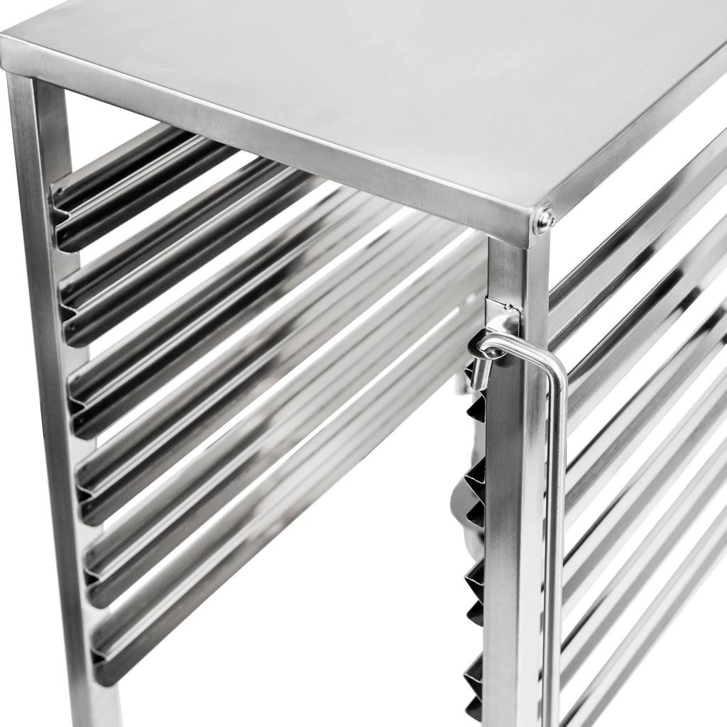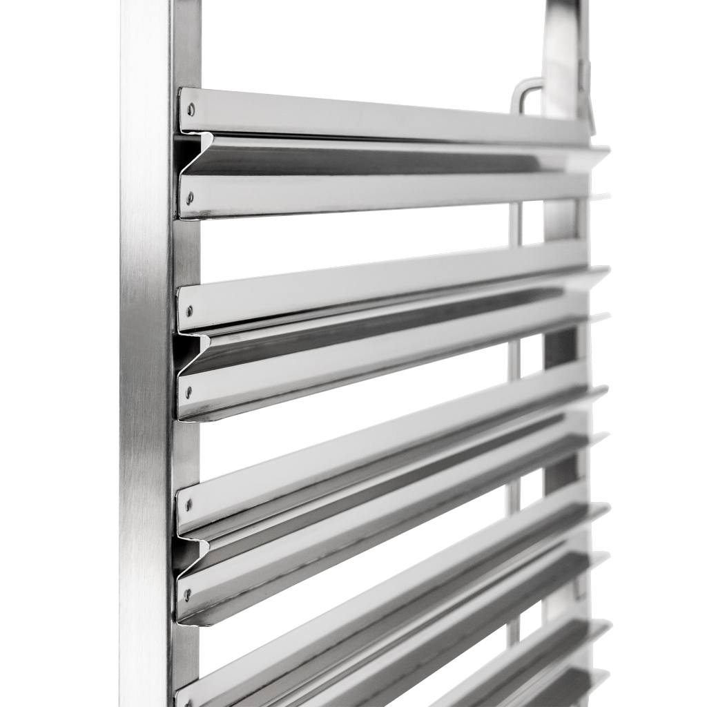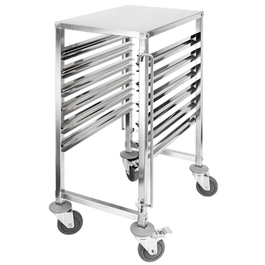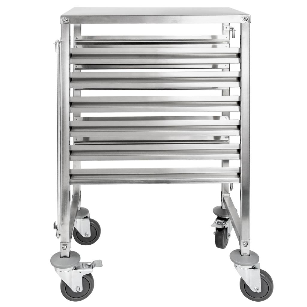 Wybierz profesjonalny wózek gastronomiczny do przewożenia pojemników typu GN 1/1. Został wykonany z trwałej stali nierdzewnej typu SS201, która jest odporna na uszkodzenia mechaniczne, dzięki czemu wózek posłuży Ci przez lata. Posiada 4 kółka (2 zostały wyposażone w hamulec), dzięki którym przejazd wózka będzie szybki, cichy i bezproblemowy. Wózek na samej górze posiada funkcjonalny, stalowy blat. Taki wózek to doskonałe rozwiązanie do zapleczy gastronomicznych w restauracjach, piekarniach, cukierniach czy hotelach. Czyszczenie wózka będzie bardzo proste, ze względu na gładką powierzchnię stali nierdzewnej.