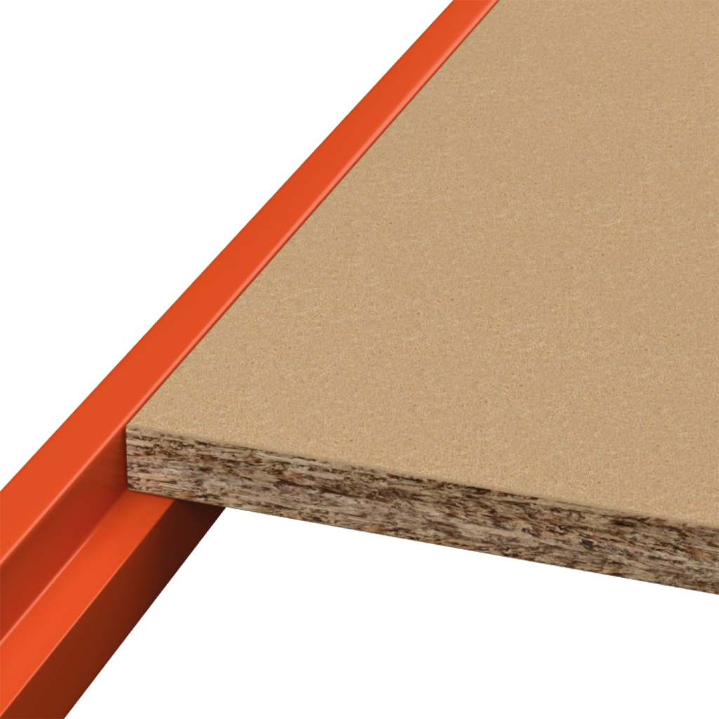 Płyta wiórowa to doskonałe wypełnienie regałów, które pozwala nam na tworzenie w regałach magazynowych dodatkowego poziomu kompletacji towaru. Doskonale nadaje się do układania magazynowanego asortymentu luzem lub w kartonach.