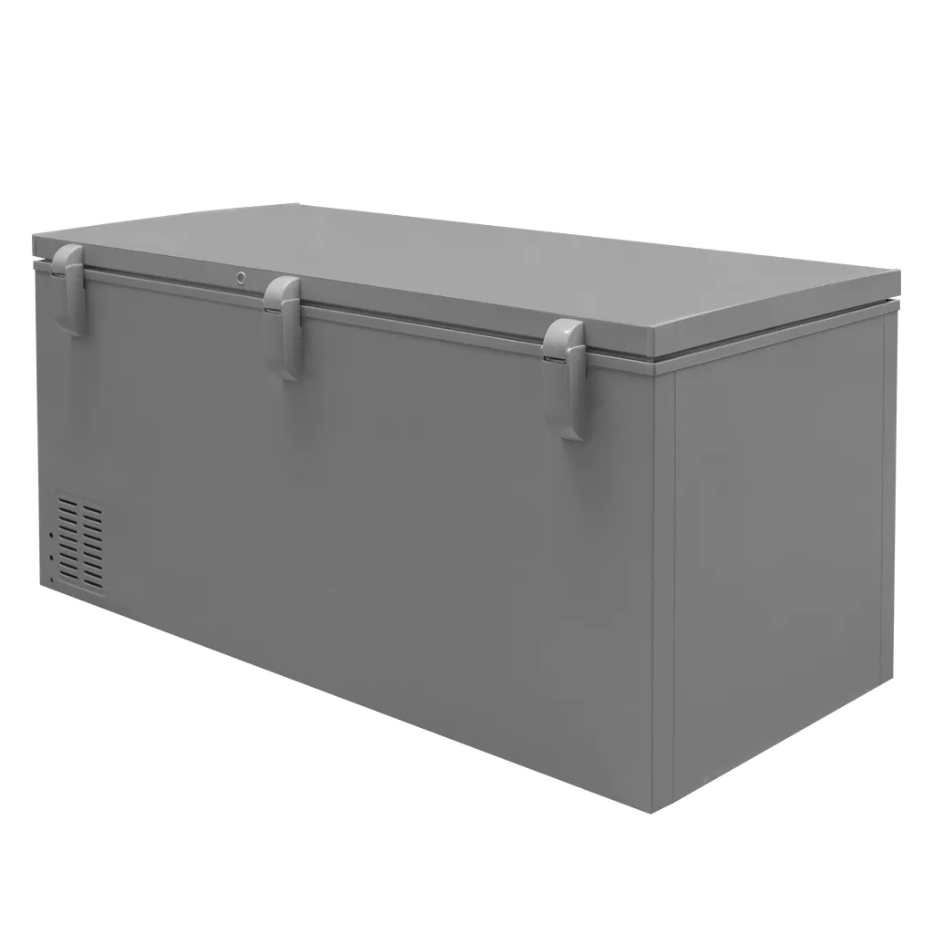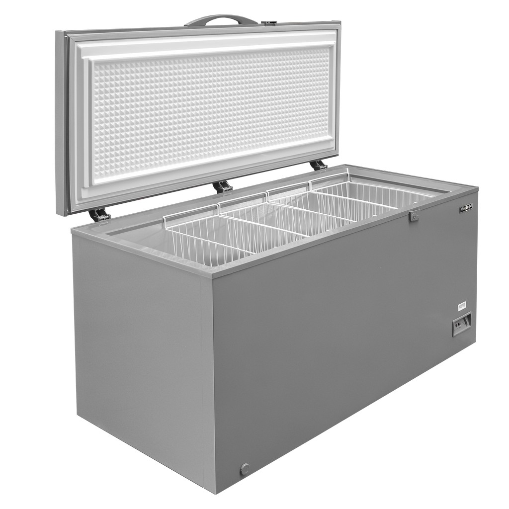 Zamrażarka marki Mega-M o pojemności 512 L służy do przechowywania żywności w odpowiednich warunkach mroźniczych. To idealne rozwiązanie do mrożenia dużych porcji mięsa, ryb oraz produktów o nietypowym kształcie. Zamrażarka wyposażona jest uchylną pokrywę otwieraną do góry, która umożliwia wygodny dostęp do produktów. Profesjonalna zamrażarka skrzyniowa charakteryzują się bardzo dobrą izolacją, dzięki czemu gwarantuje niskie zużycie energii. Urządzenie do mrożenia objęte jest 12-miesięczną gwarancja.