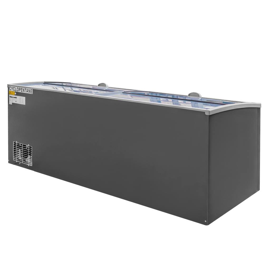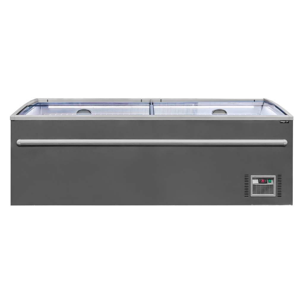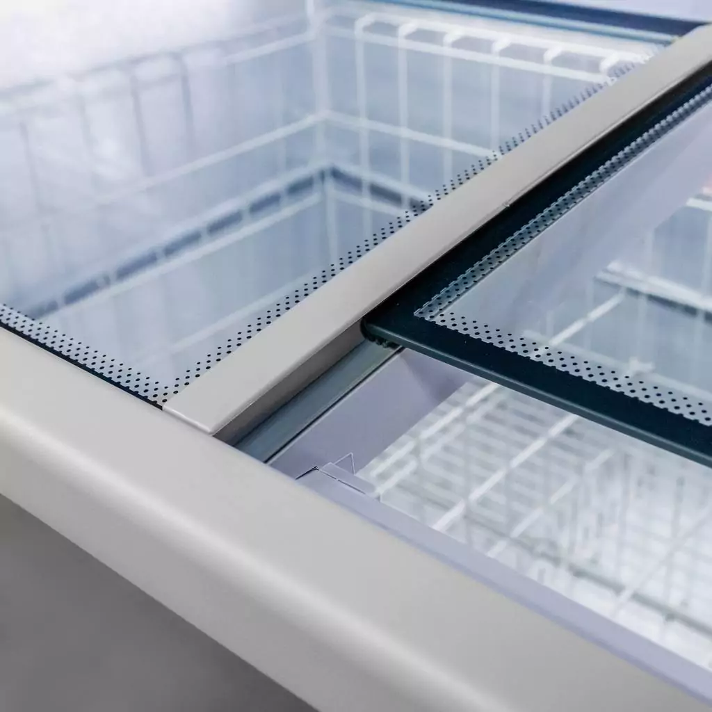 Zamrażarka przemysłowa skrzyniowa marki Mega-M o pojemności 766 l przeznaczona jest do zamrażania produktów żywnościowych. Charakteryzuje się nowoczesnym wzornictwem, ale też funkcjonalnością i wygodą użycia. Witryna przeszklona umożliwia mrożenie i ekspozycję lodów, owoców, warzyw, mięsa, ryb oraz mrożonych produktów gotowych. W urządzeniach zastosowane zostały podzespoły renomowanych marek gwarantujących długą żywotność produktu. Profesjonalna zamrażarka przeszklona posiada nowoczesną konstrukcję otwierania, która dzięki przesuwnej szybkie, umożliwia korzystanie z bonety mroźniczej kilku osób w tym samym czasie. Zamontowane oświetlenie LED poprawia widoczność mrożonych produktów.