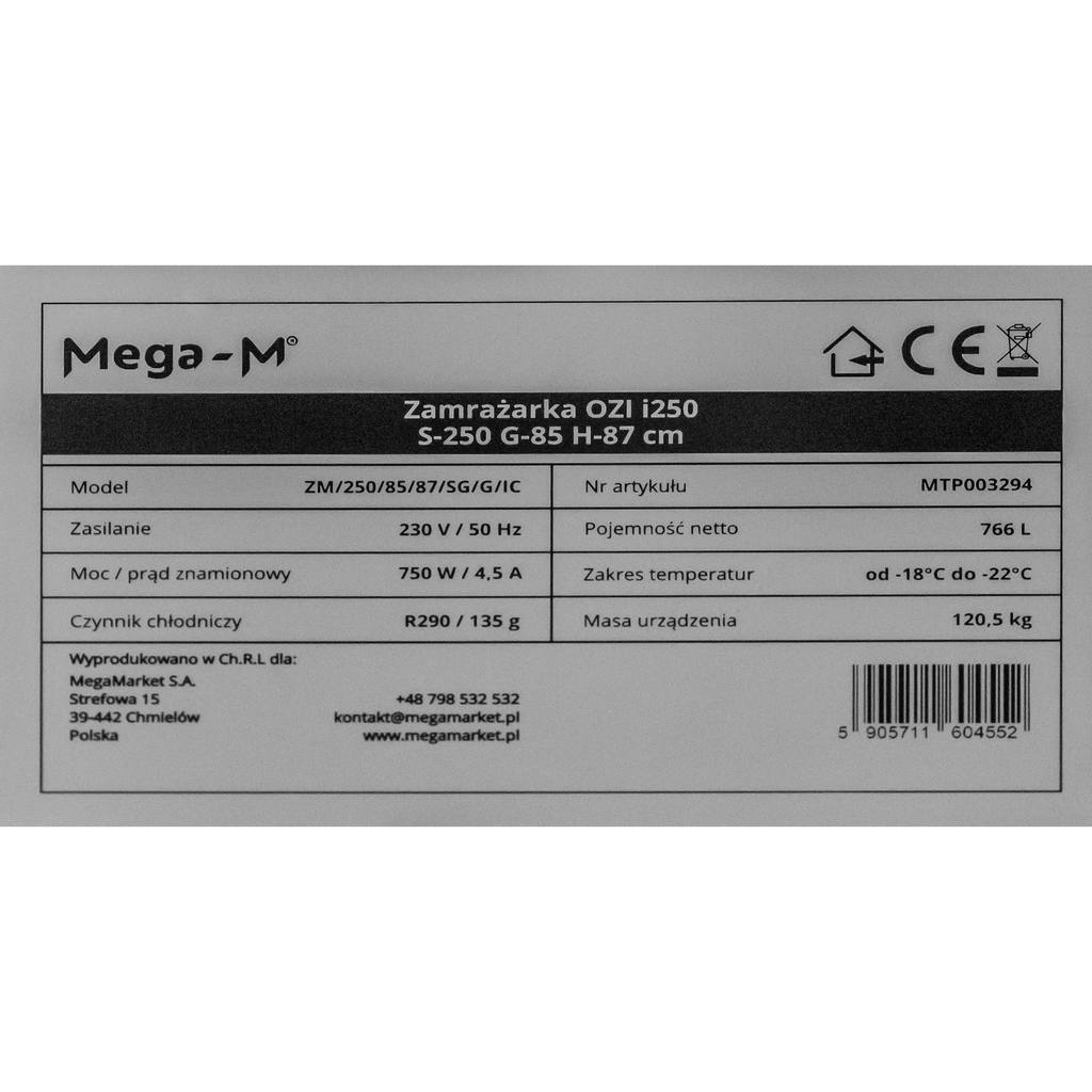 Zamrażarka Mega-M OZI i250 Automatyczne rozmrażanie S-250 cm G-85 cm H-87 cm N
