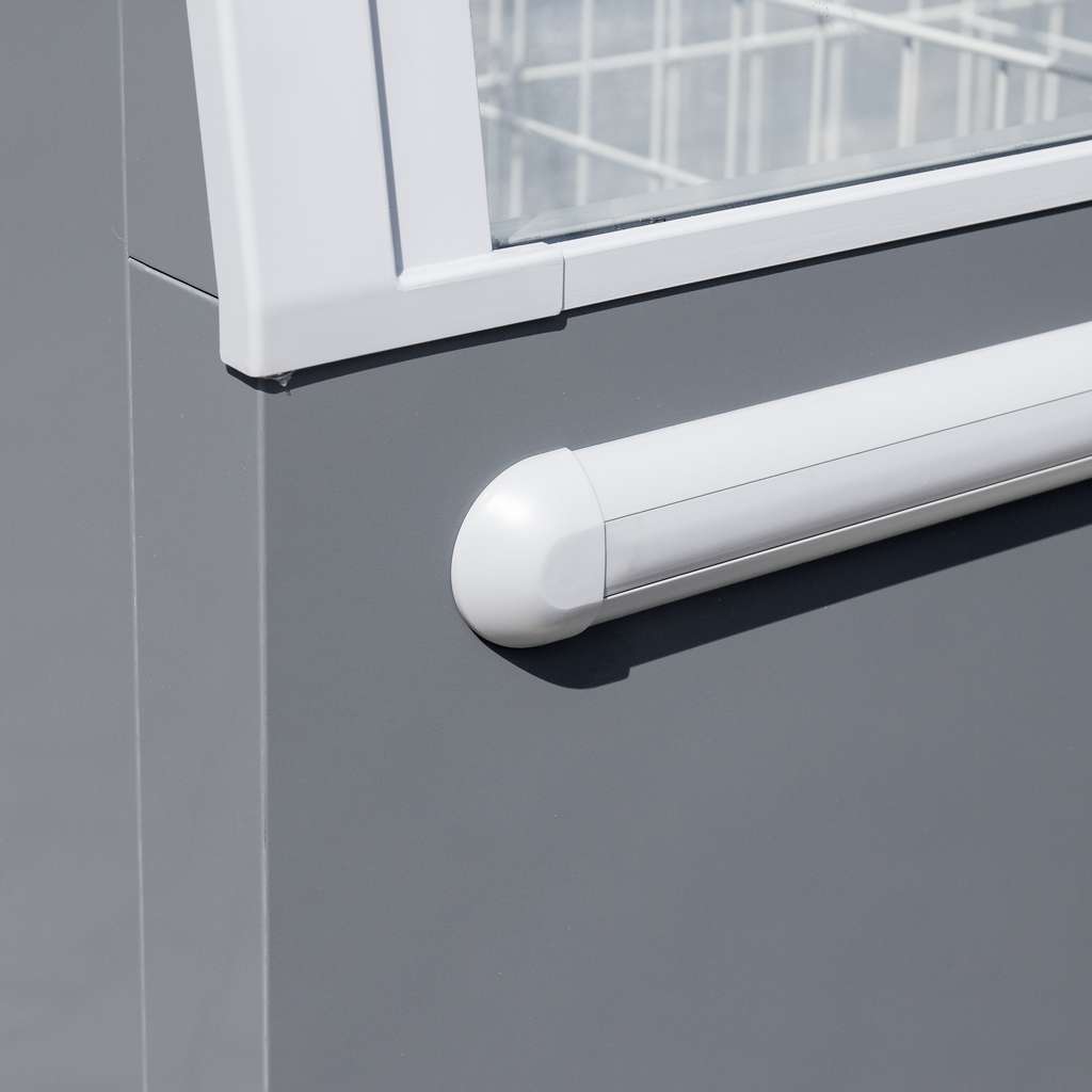Przemysłowa zamrażarka skrzyniowa Mega-M OZI i250 o pojemności 766 litrów to wydajne urządzenie do mrożenia i ekspozycji produktów spożywczych. Łączy w sobie nowoczesne wzornictwo, wysoką funkcjonalność i komfort użytkowania, dlatego sprawdzi się w sklepach, marketach i punktach gastronomicznych. Przeszklona witryna i boki pozwalają na estetyczne przechowywanie i prezentację lodów, owoców, warzyw, mięsa, ryb oraz gotowych dań mrożonych. W konstrukcji zastosowano wysokiej jakości podzespoły renomowanych marek, które zapewniają niezawodność i długą żywotność zamrażarki, nawet przy intensywnej eksploatacji. Model ten wyposażono w system przesuwnych szyb, dzięki czemu z urządzenia może korzystać jednocześnie kilka osób. Dodatkowo oświetlenie LED zwiększa widoczność mrożonych produktów, poprawiając ich ekspozycję i ułatwiając wybór towaru.