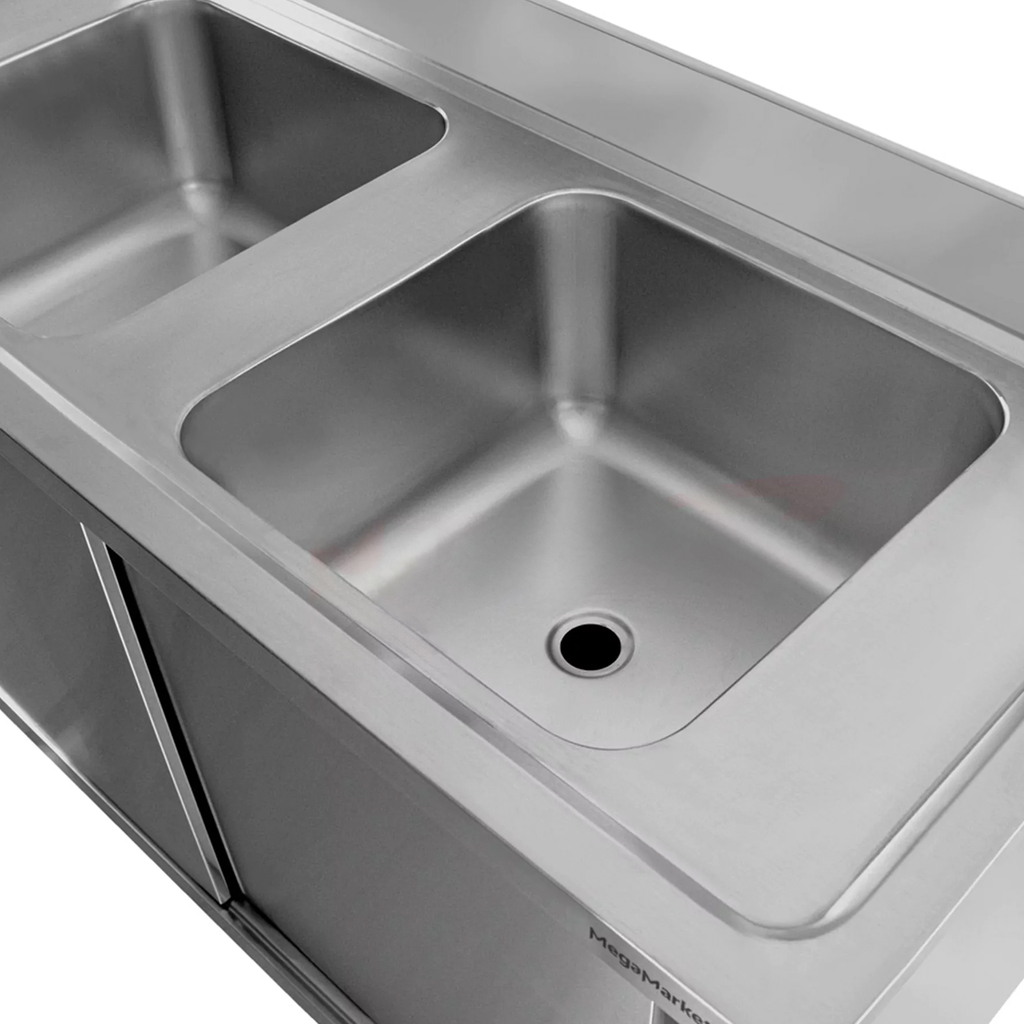 Zlew gastronomiczny dwukomorowy z szafką Mega-M 120x70x85 cm stal nierdzewna – maksymalna funkcjonalność